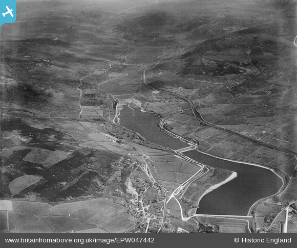 EPW047442 ENGLAND (1935). Bottoms, Valehouse, Rhodeswood and Torside Reservoirs, Longdendale, from the west, 1935