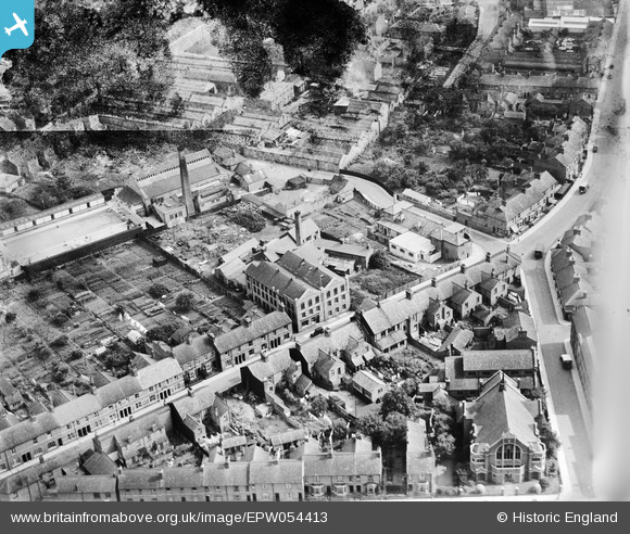 EPW054413 ENGLAND (1937). The Stimpson Bros Ltd Leather Factory on Bath Road, Kettering, 1937. This image has been produced from a damaged negative.