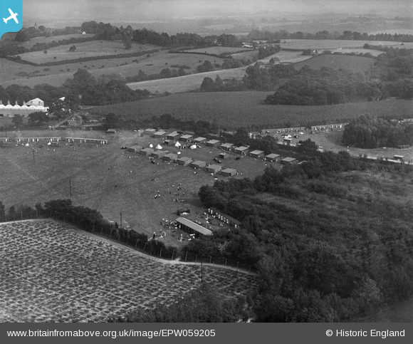 EPW059205 ENGLAND (1938). Hop-pickers encampment near Dykes Farm, Ockham, from the north-west, 1938