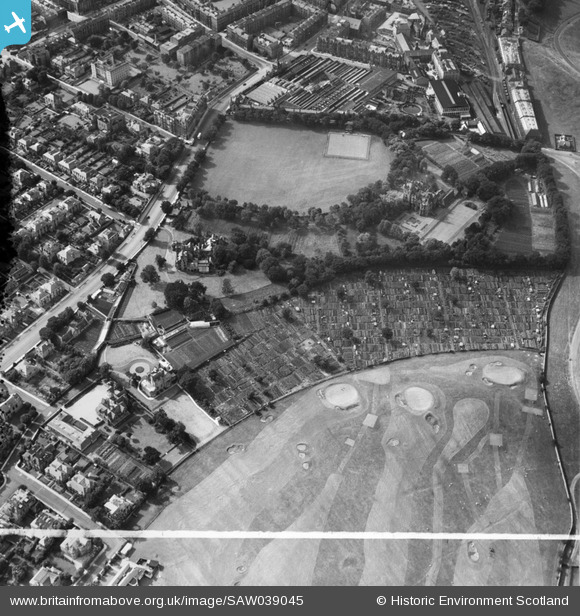 SAW039045 SCOTLAND (1951). Edinburgh, general view, showing St Leonard's Hall, Holyrood Park Road and Salisbury Green, Dalkeith Road. An oblique aerial photograph taken facing north-west. This image has been produced from a crop marked negative.