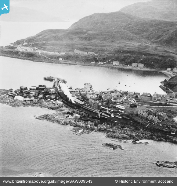 SAW039543 SCOTLAND (1951). Mallaig, general view, showing Mallaig Harbour and Station. An oblique aerial photograph taken facing east. This image has been produced from a print.