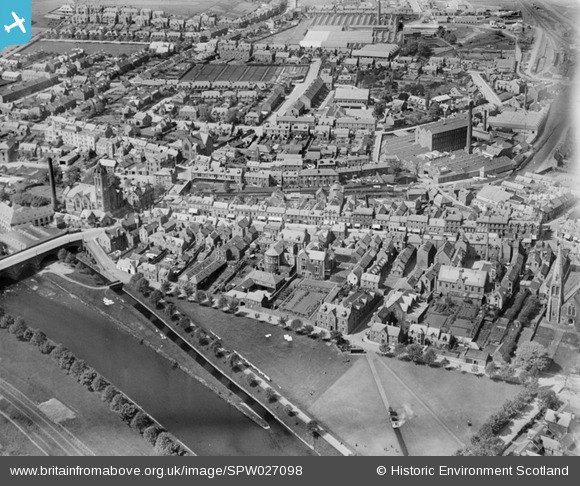 SPW027098 SCOTLAND (1929). Peebles, general view, showing High Street and Tweed Green. An oblique aerial photograph taken facing north.
