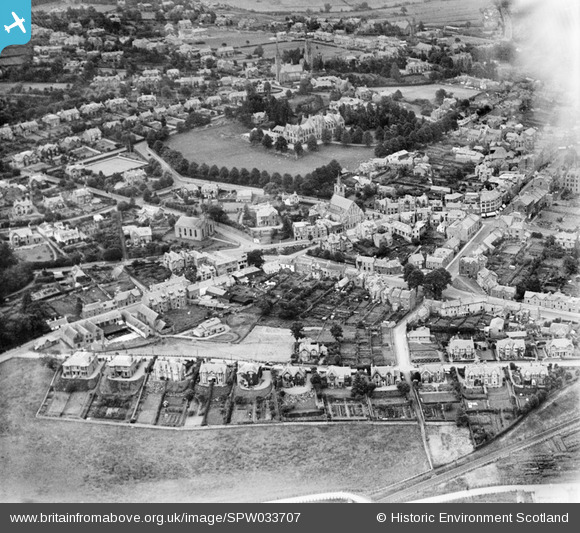 SPW033707 SCOTLAND (1930). Crieff, general view, showing Milnab Street and Morrison's Academy, Ferntower Road. An oblique aerial photograph taken facing east.