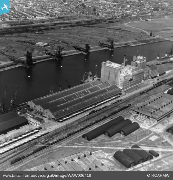 WAW036419 WALES (1951). View of Rank Hovis Atlantic Mills at No. 2 Dock, Barry Docks. Oblique aerial photograph, 5½" cut roll film.