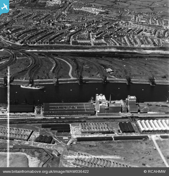 WAW036422 WALES (1951). View of Rank Hovis Atlantic Mills at No. 2 Dock, Barry Docks. Oblique aerial photograph, 5½" cut roll film.