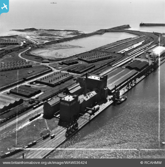 WAW036424 WALES (1951). View of Rank Hovis Atlantic Mills at No. 2 Dock, Barry Docks. Oblique aerial photograph, 5½" cut roll film.