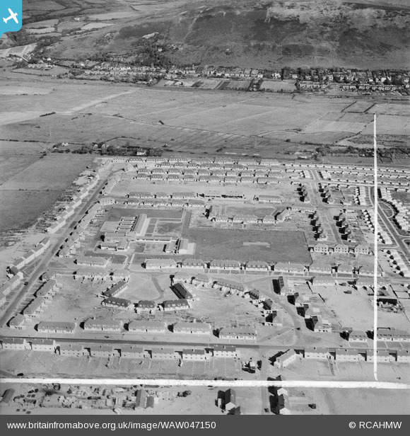 WAW047150 WALES (1952). View of newly-built housing at the Sandsfield Estate, Aberavon, showing the Comprehensive School