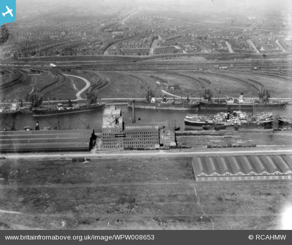 WPW008653 WALES (1923). View of Rank Hovis Atlantic Mills at No. 2 Dock, Barry Docks. Oblique aerial photograph, 5"x4" BW glass plate.