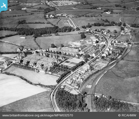 WPW032570 WALES (1930). General view of Church Village, Llantwit Fardre, oblique aerial view. 5"x4" black and white glass plate negative.