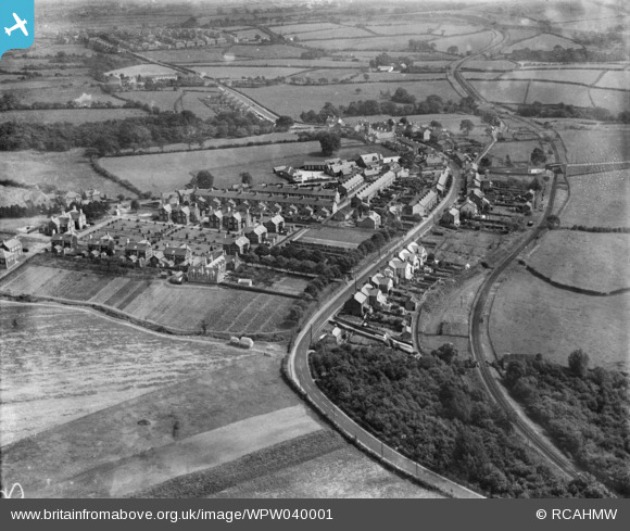 WPW040001 WALES (1932). General view of Church Village, Llantwit Fardre, oblique aerial view. 5"x4" black and white glass plate negative.