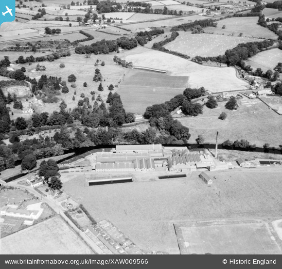 XAW009566 NORTHERN IRELAND (1947). Lambeg Bleaching, Dyeing & Finishing Co., Lambeg, Lisburn, Northern Ireland, 1947. Oblique aerial photograph taken facing North.