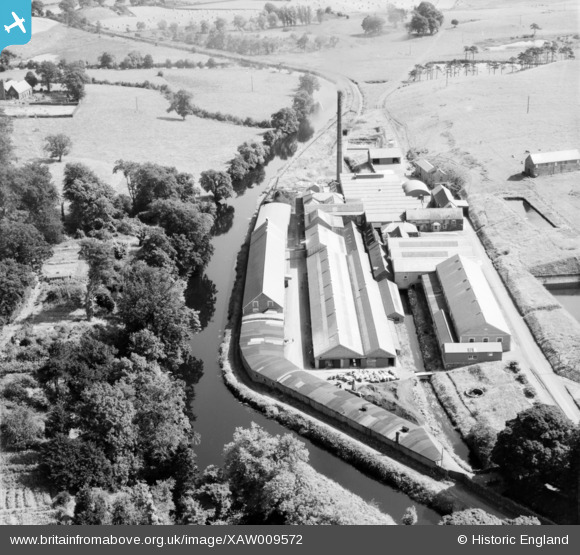 XAW009572 NORTHERN IRELAND (1947). Lambeg Bleaching, Dyeing & Finishing Co., Lambeg, Lisburn, Northern Ireland, 1947. Oblique aerial photograph taken facing East.