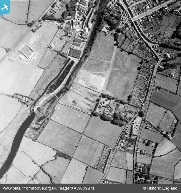 XAW009871 NORTHERN IRELAND (1947). Old Bleach Linen Co., Randalstown, Antrim, Northern Ireland, 1947. Oblique aerial photograph taken facing South/East.