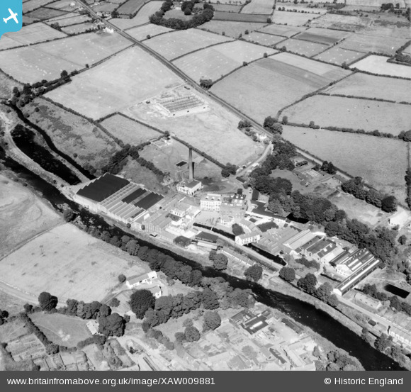 XAW009881 NORTHERN IRELAND (1947). Old Bleach Linen Co., Randalstown, Antrim, Northern Ireland, 1947. Oblique aerial photograph taken facing North/East.