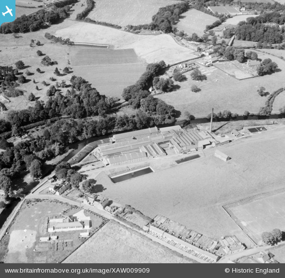 XAW009909 NORTHERN IRELAND (1947). Lambeg Bleach Co., Lambeg, Lisburn, Northern Ireland, 1947. Oblique aerial photograph taken facing North.