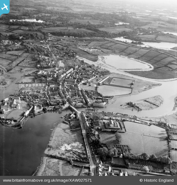 XAW027571 NORTHERN IRELAND (1949). Taylor Woods Ltd., Enniskillen, Fermanagh, Northern Ireland, 1949. Oblique aerial photograph taken facing South/East.