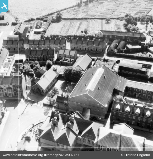 XAW032767 NORTHERN IRELAND (1950). Gracey Brothers Ltd., Portadown, Craigavon, Northern Ireland, 1950. Oblique aerial photograph taken facing South. This image was marked by Aerofilms Ltd for photo editing.
