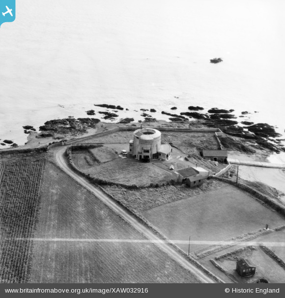 XAW032916 IRELAND (1950). Martello tower near Portrane, Dublin, Ireland, 1950. Oblique aerial photograph taken facing East. This image was marked by Aerofilms Ltd for photo editing.