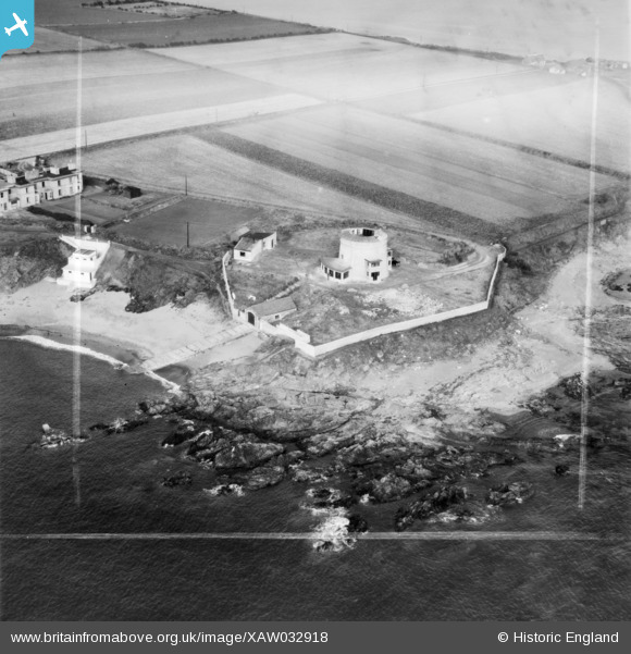 XAW032918 IRELAND (1950). Martello tower near Portrane, Dublin, Ireland, 1950. Oblique aerial photograph taken facing West. This image was marked by Aerofilms Ltd for photo editing.