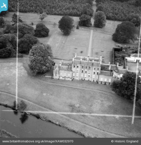 XAW032970 IRELAND (1950). Ballymahon House & Grounds, Ballymahon, Longford, Ireland, 1950. Oblique aerial photograph taken facing South/East. This image was marked by Aerofilms Ltd for photo editing.
