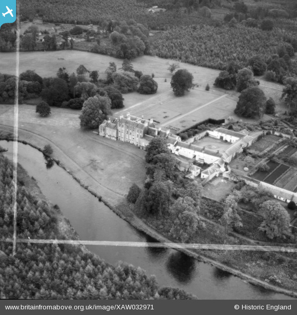 XAW032971 IRELAND (1950). Ballymahon House & Grounds, Ballymahon, Longford, Ireland, 1950. Oblique aerial photograph taken facing East. This image was marked by Aerofilms Ltd for photo editing.