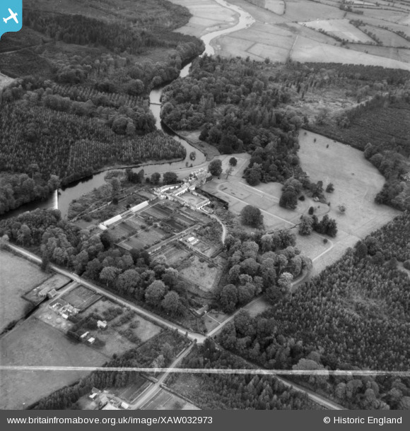 XAW032973 IRELAND (1950). Ballymahon House & Grounds, Ballymahon, Longford, Ireland, 1950. Oblique aerial photograph taken facing North. This image was marked by Aerofilms Ltd for photo editing.