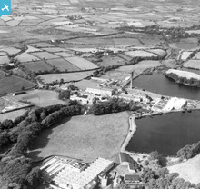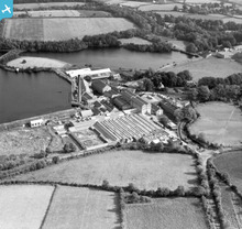 [XAW019208] William Clark and Sons Ltd, Upperlands, Magherafelt, Northern Ireland, 1948. Oblique aerial photograph taken facing East.