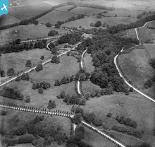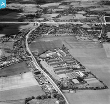 [EAW049736] Upholland Road and Billinge Hospital, Orrell, 1953. This image was marked by Aerofilms Ltd for photo editing.