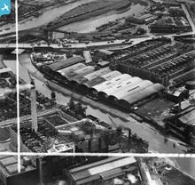 [EAW031997] James and Ronald Ritchie Ltd Acklam Foundry, Middlesbrough Goods Yard Sidings and environs, Middlesbrough, 1950. This image was marked by Aerofilms Ltd for photo editing.