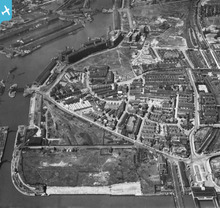 [EAW038528] East Float and Alfred Dock, Seacombe, 1951. This image has been produced from a print.