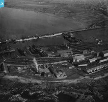 Troon Harbour and North Sands. An oblique aerial photograph taken fa...