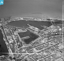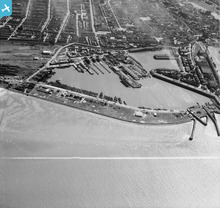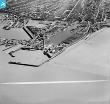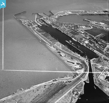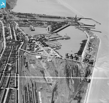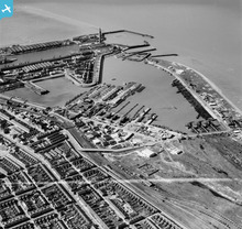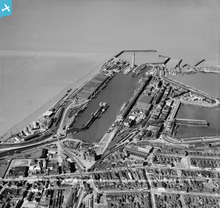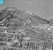The Royal Dock and Tidal Basin, Grimsby, 1950. This image was marked ...