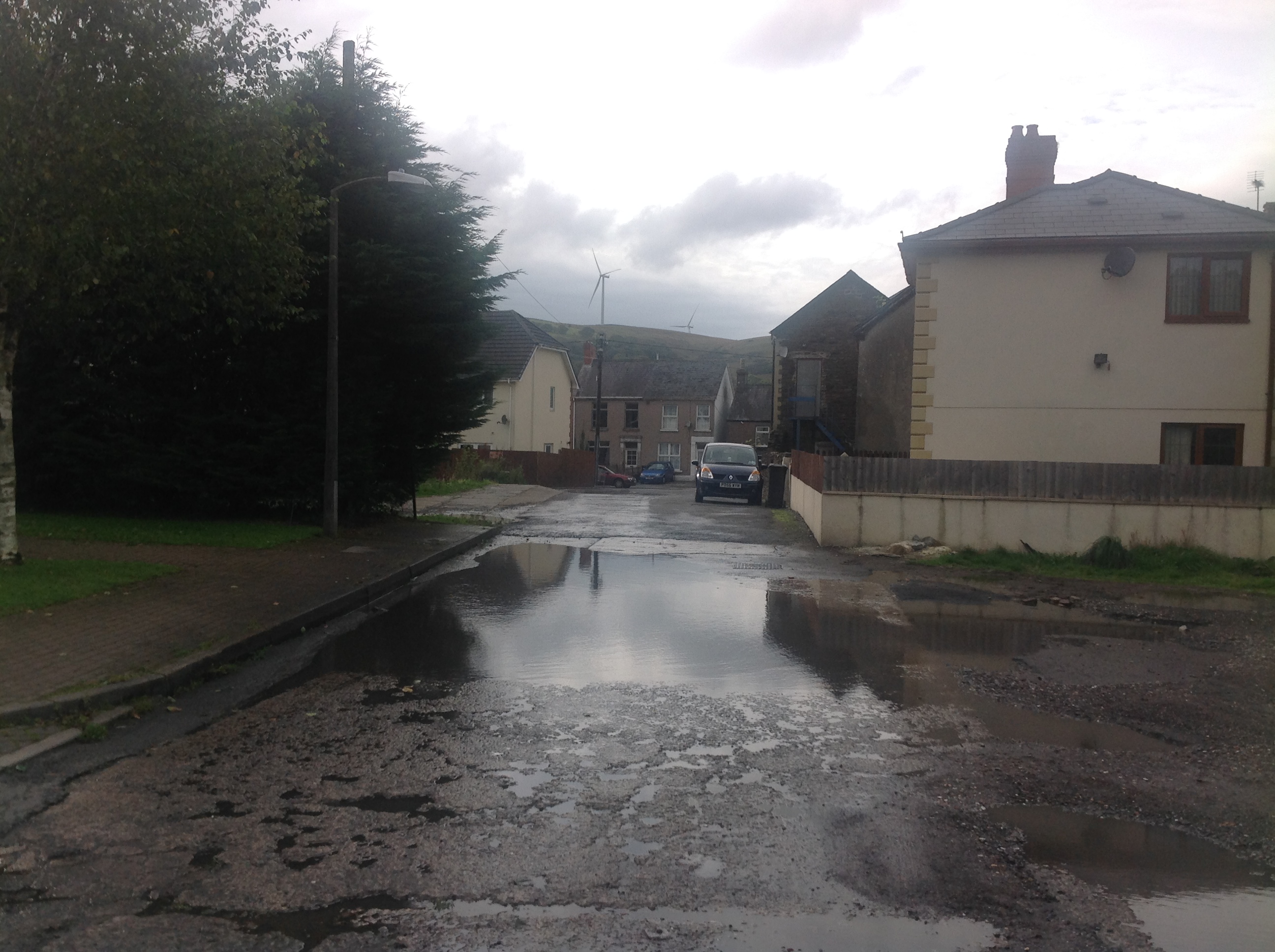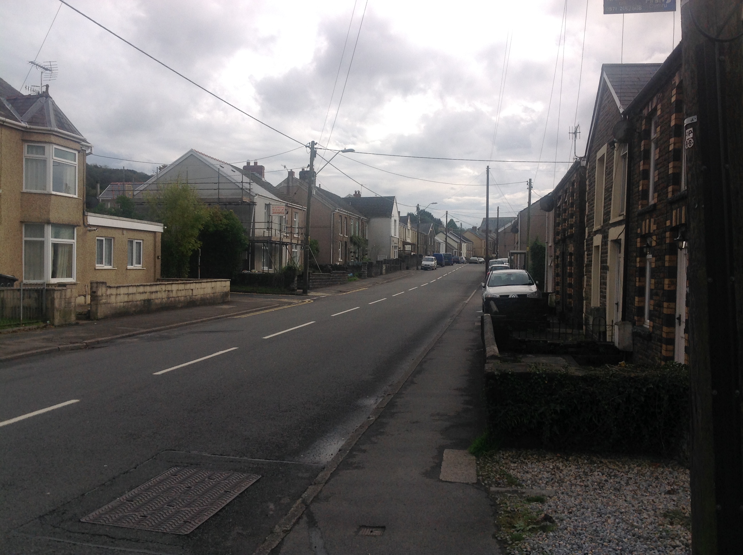 Cemetery Road looking west towards T. J's Tavern from the centre of the colliery site 17/10/2013 |