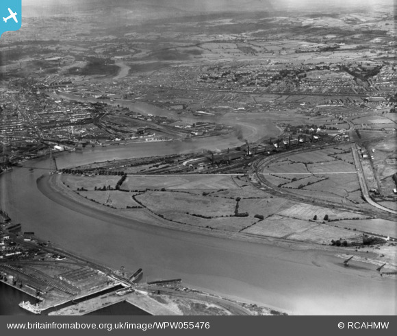 WPW055476 WALES (1937). View of Newport showing Newport Tubeworks, oblique aerial view. 5"x4" black and white glass plate negative.