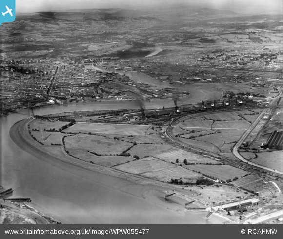 WPW055477 WALES (1937). View of Newport showing Newport Tubeworks, oblique aerial view. 5"x4" black and white glass plate negative.