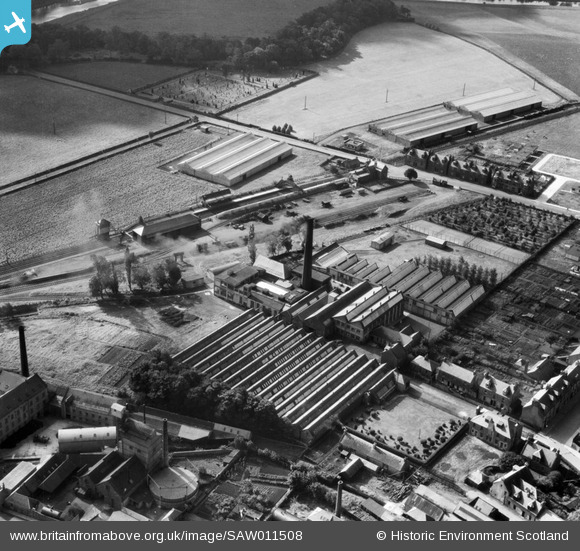 saw011508 SCOTLAND (1947). D Ballantyne Brothers and Co. Ltd. Waverley Mills, Morningside, Innerleithen. An oblique aerial photograph taken facing south.
