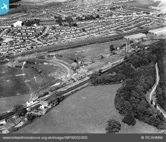 wpw032455 WALES (1930). View of the Excelsior Wire Rope Works, Gabalfa, oblique aerial view. 5"x4" black and white glass plate negative.