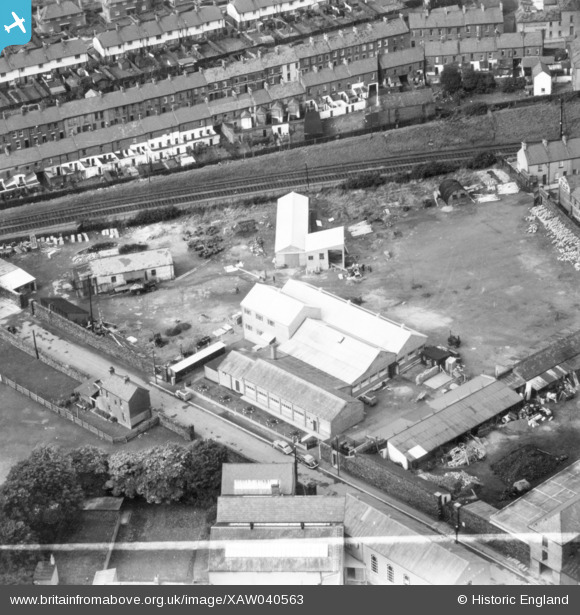 xaw040563 NORTHERN IRELAND (1951). Messrs. Ulster Laces, Portadown, Craigavon, Northern Ireland, 1951. Oblique aerial photograph taken facing West. This image was marked by Aerofilms Ltd for photo editing.