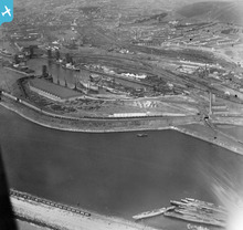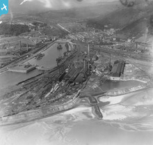 View of Aberavon showing steelworks, oblique aerial view. 5"x4" bla...