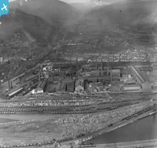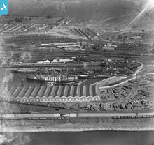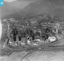 View of the Cambrian Works, Llanelli, oblique aerial view. 5"x4" bl...