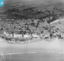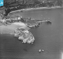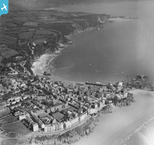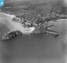 View of Tenby, oblique aerial view. 5"x4" black and white glass pla...