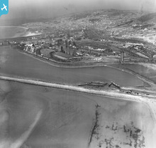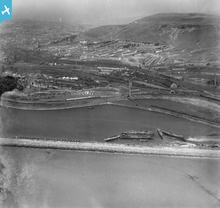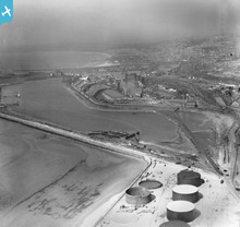 View of Aberavon showing docks, oblique aerial view. 5"x4" black an...