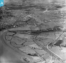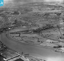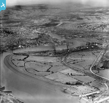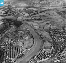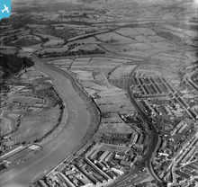 View of Shaftesbury area of Newport showing river, park, allotments a...