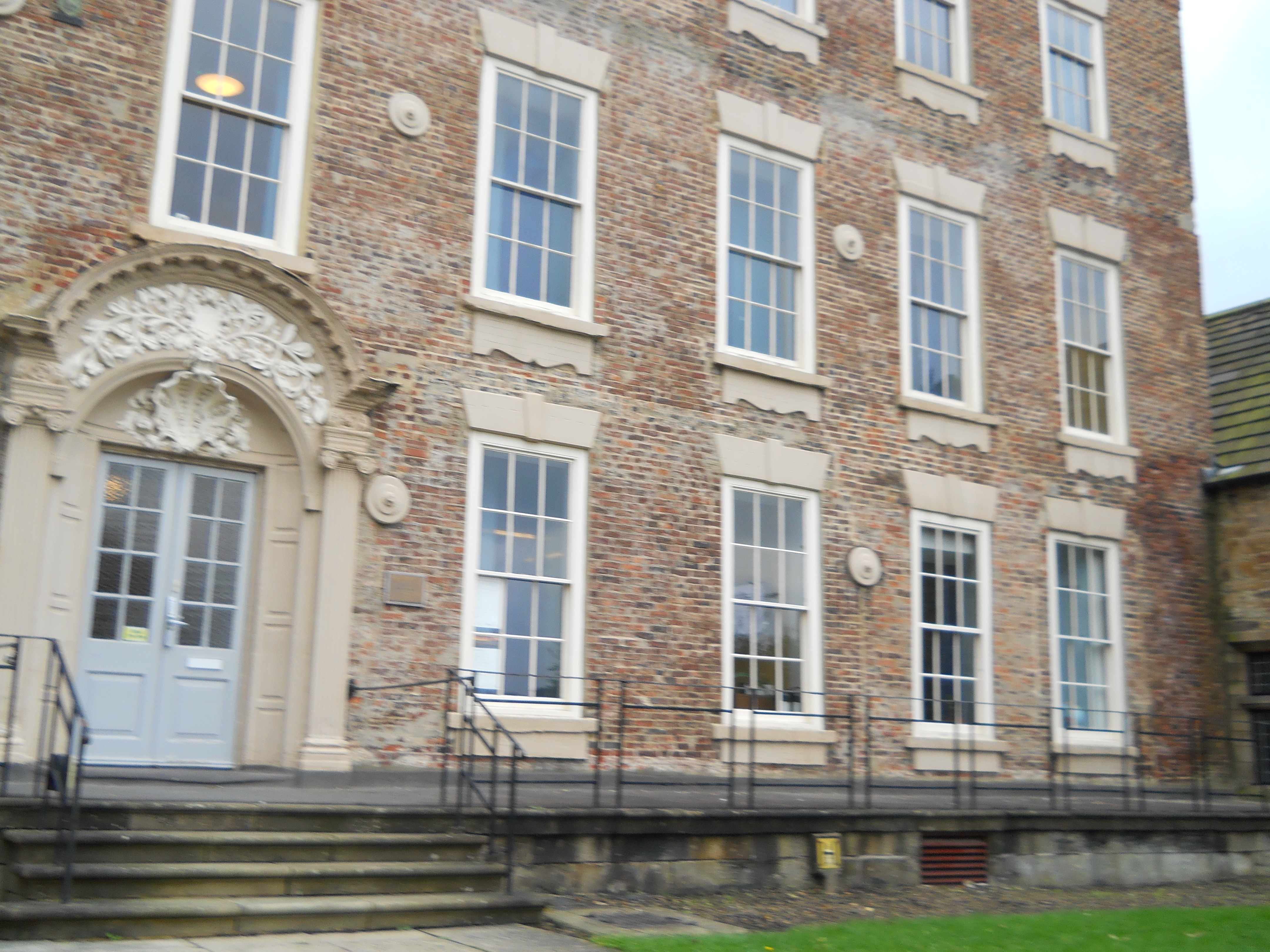 This picture shows the old Alms Houses, built 1666, and also Cosin Library, built 1669.