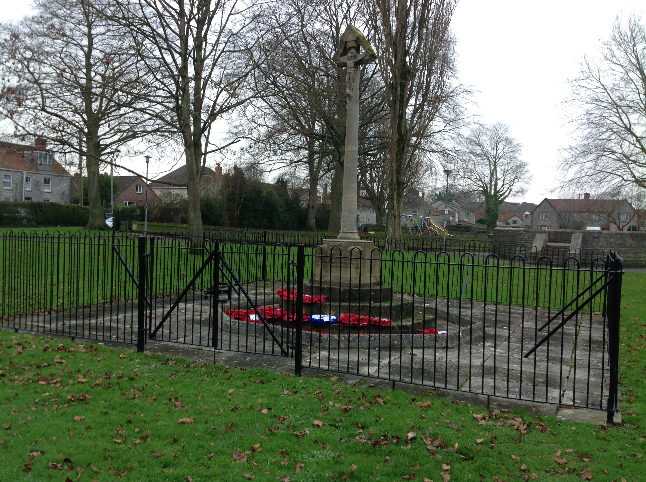 The War Memorial is now situated here at Merriman Gardens, Street, 04/01/2015 |