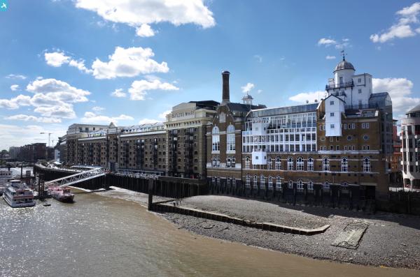 | Pennawd | [EAW022339] The Tower of London, Tower Bridge, St Katharine Docks and environs, London, from the south-west, 1949 |