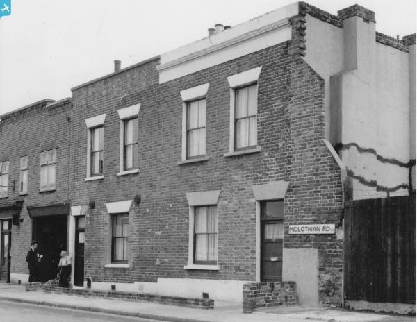 | Pennawd | [EAW022340] Regent's Canal Dock and the Metropolitan Borough of Stepney, Limehouse, from the south-east, 1949 |