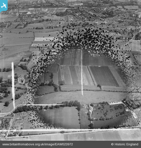 Pennawd | [EAW023972] Crown Farm, Eton Great Common, North Field and environs, Eton Wick, from the south-west, 1949. This image has been produced from a damaged negative. |