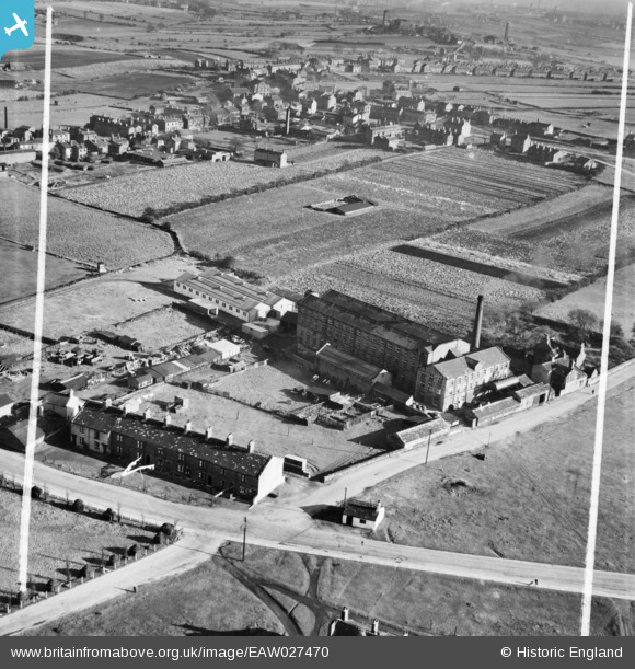 EAW027470 ENGLAND (1949). The Moorland Woollen Mills, Drighlington, 1949. This image was marked by Aerofilms Ltd for photo editing.