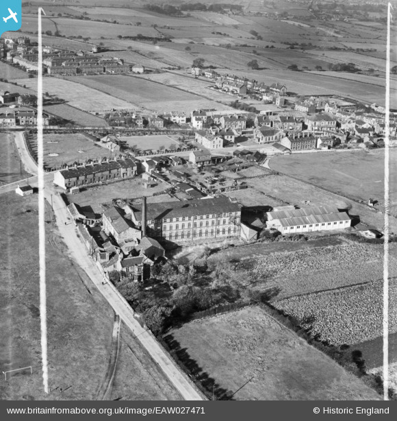 EAW027471 ENGLAND (1949). The Moorland Woollen Mills and Drighlington Park, Drighlington, 1949. This image was marked by Aerofilms Ltd for photo editing.